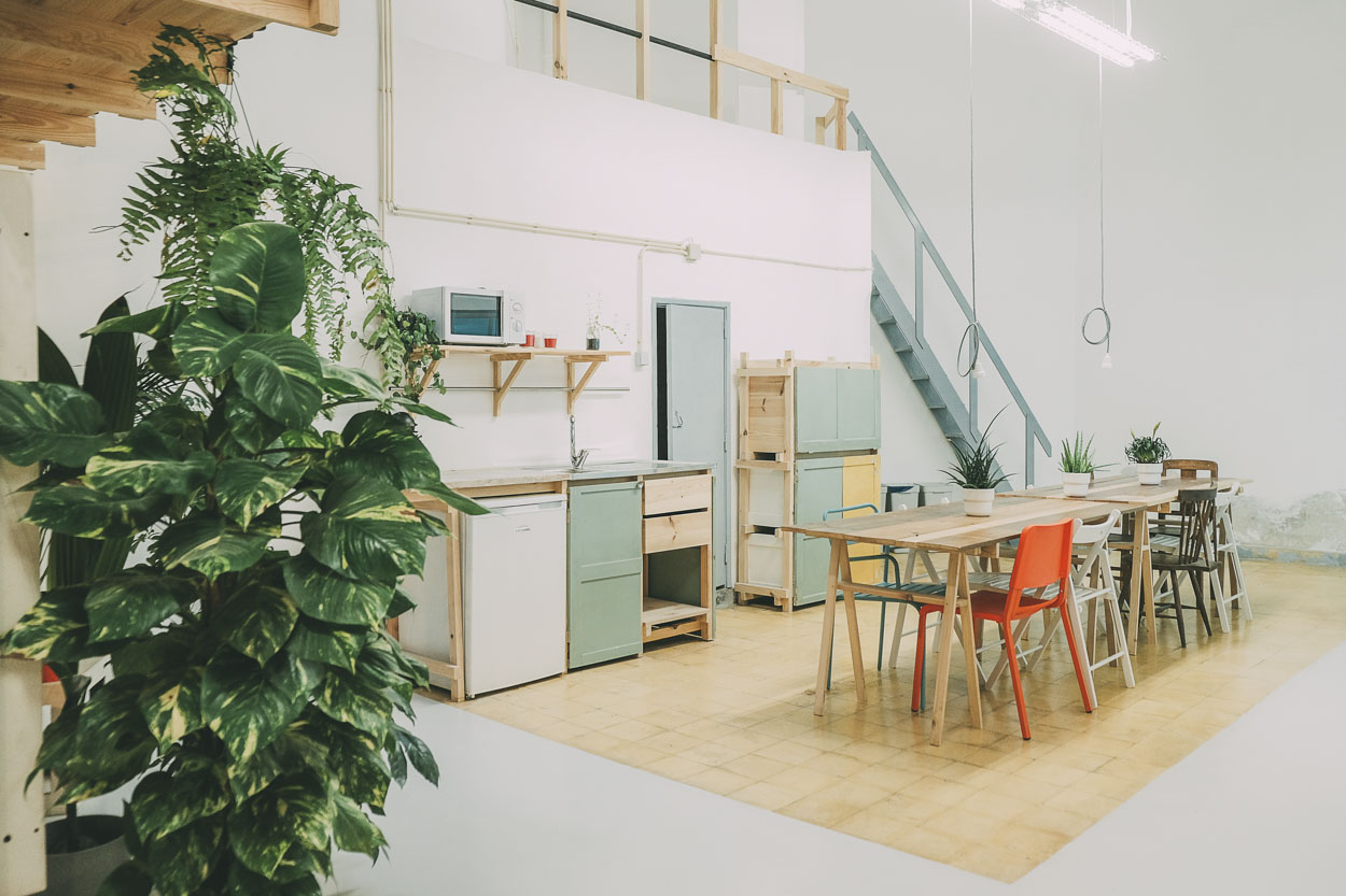 The initial brief was to convert an old car workshop with 167sqm, into a collective workspace for art related professionals. The program includes a varied set of private and shared spaces to be organized around and within the big volume of the car workshop.